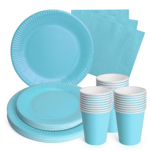 PARTY GO Partygeschirr Partyzubehör Blau Set Dekoration Geburtstag Kinderparty Geschirr Enthält 24 9" Pappteller 24 7" Pappteller 24 Pappbecher 24 Servietten für 24 Gäste Mädchen Jungen Themenparty
