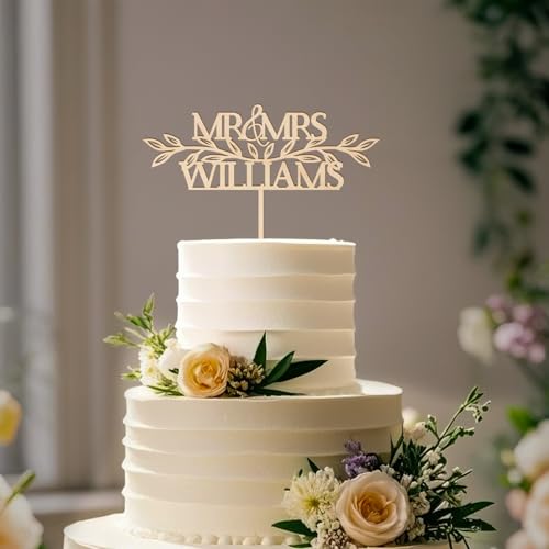 Party to Be Mr & Mrs Customized Hochzeit Cake Topper in Holz Personalisiert Braut und Bräutigam mit dem Nachnamen grünen Blättern Kuchen Dekoration