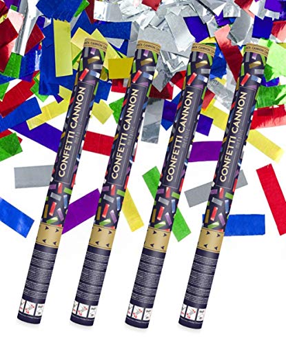 4x XXL (60 cm) Partykanone Partypopper Streamer ®Auto-schmuck (Bunt Metalic)