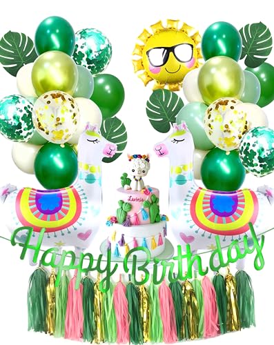 Happy Birthday Alpaka Set Geburstagsdeko Tier Geburstags Girlande Party Deko (Alpaka Grün)