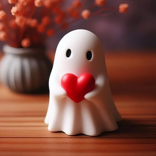 Skeadex Halloween Deko Geist Statue, Niedliche Keramik Geist Figuren, Mittelfinger Geist Figuren Hände halten Liebe Geisterfigur, Halloween Tischdeko Desktop Ornamente (B)