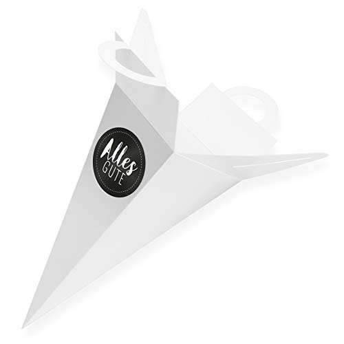 itenga Geschenktüte Gastgeschenk Schultüte Weiß 32 cm mit Sticker Aufkleber 7,0 cm Alles Gute
