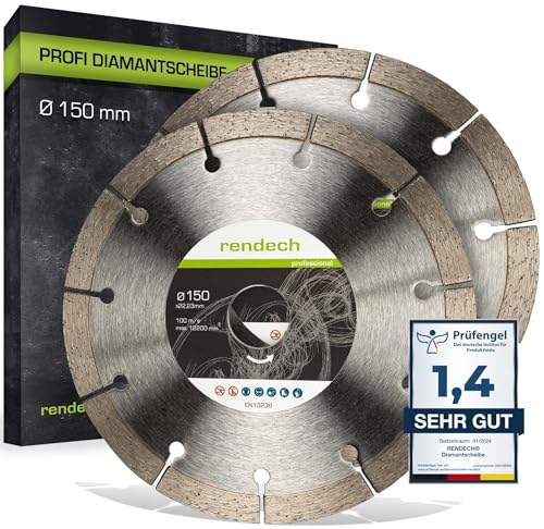 2x Profi Diamantscheibe 150mm für Mauernutfräse - Diamanttrennscheibe für Mauerwerk, Beton, Klinker, Stein uvm. | rendech® Markenqualität