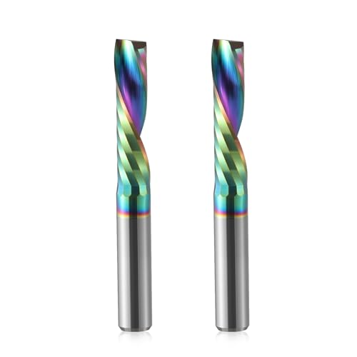 Dies ist ein O-Flöte nach unten geschnittenes Bit, 6mm Schaft, der Zweck eines Downcut Bit ist, den glattesten möglichen Oberflächenschnitt zu liefern. Sie erhalten minimalen oder keinen Oberflächenriss mit einem Downcut Bit, weil der Cutter spiralförmig nach unten anstatt nach oben verläuft. Die nach unten geschnittenen Bits hinterlassen eine saubere Oberkante, aber eine raue Unterkante. Im Gegensatz dazu bieten vorgeschnittene Bits normalerweise eine bessere Nutfreigabe des Abfalls und einen glatteren unteren Schnitt, aber einen weniger glatten oberflächlichen Schnitt. Also wählen Sie bitte das richtige Bit basierend auf Ihrem Projektbedarf Hartmetall Spiral Downcut Bit mit 6mm Schaft 6mm Schneiddurchmesser, 25mm Schneidlänge, 50mm für Gesamtlänge, Satz von 2 Spiralnutfräser mit DLC-Beschichtung: Mit hoher Härte und Hitzebeständigkeit behält die Schneidkante des Werkzeugs entscheidende Schärfe und Schmierfähigkeit. Dies sorgt für Langlebigkeit und führt zu Schnittergebnissen höchster Qualität. Saubere Oberfläche, ordentlich, keine Störungen. Diese 6mm einzelne Welle Endfräser ist weit verbreitet für CNC-Gravur, Fräsen, Schruppen, Aushöhlen, 3D-Bildhauerzwecke. Ideal zum Schnitzen/Schneiden/Gravieren/Fräsen/Schlitzen/Bildhauen in Materialien wie MDF, ABS, PVC, Acryl, Nylon, Harz, Kunststoffen, Dichteplatte, Holz, Sperrholz, Hartholz etc. Das Design der einzelnen Welle, des größeren Spiralspanraums und des Spiegelpolierens des CNC-Fräserbisses macht Antihaftkrümel, glattes Schneiden und schnelle Spanentfernung Diese o-Welle Endfräser 4mm Schaft mit hoher Präzision geschliffen und poliert, hohe Abriebfestigkeit und Temperaturbeständigkeit, gute Steifigkeit, nicht leicht zu brechen