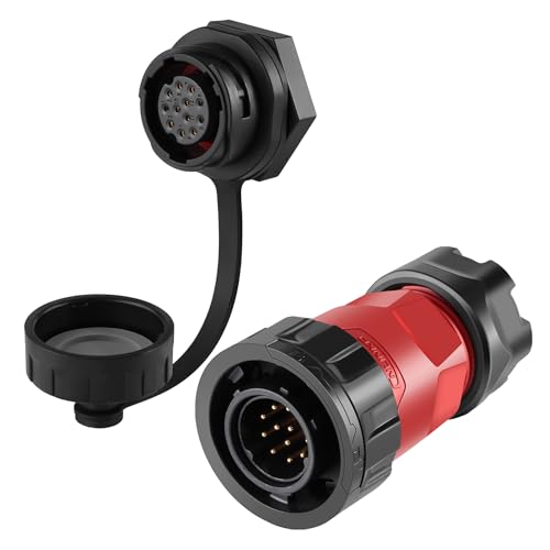 CNLINKO YM-20 12-Pin Wasserdichter Steckverbinder, IP68 Rundsteckverbinder, Quick Plug Aviation Steckverbinder, PBT Kunststoffgehäuse Lötstecker M20 Stecker-Buchse (12 Pin)