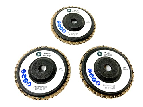 WELLERWERKZEUGE | Fächerscheiben SET Körnung:80 76x10mm passend für mini Akku Winkelschleifer wie Bosch GWS 10,8V 12V für Stahl Holz Kunststoff (3)