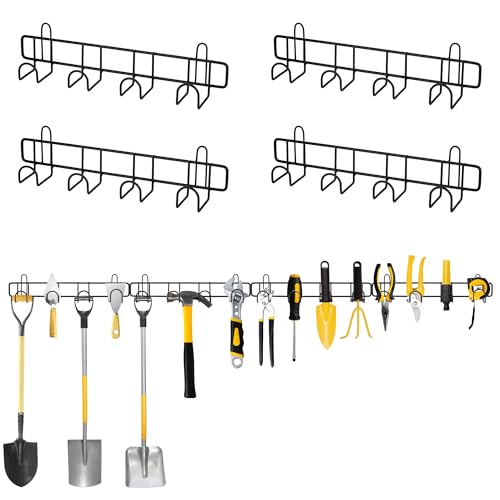 Hejo 4 Stück Gartengerätehalter, Gerätehalter Wandhalterung aus Metall, Gartengerätehalter Lagerschuppen Gartenwerkstatt-Aufbewahrung für Schaufeln, Rechen, Besen, Schwarz