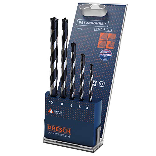 Presch Betonbohrer Set Profi 5-tlg - Hochwertiges Steinbohrer Set mit Zylinderschaft - Schlagbohrer für Beton, Stein, Mauerwerk und Marmor - Ø 4-10mm