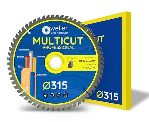 WELLERWERKZEUGE | Profi MULTICUT Kreissägeblatt Sägeblatt 315x30mm + 25mm 60 Zähne für Holz Kunststoff Aluminium passend für Akku Kreissäge Tischsäge für Makita Metabo Scheppach