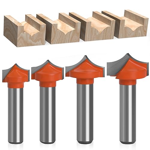 WSOOX 4 Stück Nutpunkt Fräser Bit, Ø-Schaft 8mm, Abrundfräser, Runde Über Fräser Bits, Fräser Holzfräser Werkzeug Holzbearbeitungsset