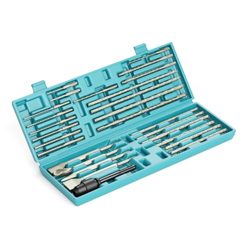 Große Auswahl: Das 27-teilige Set enthält 22 Bohrer in verschiedenen Größen, 4 Meißel und 1 Adapter. Die Meißel enthalten 2 unterschiedlich große Flachmeißel, einen U-Nut-Meißel und einen Spitzmeißel, der die meisten Ihrer Bedürfnisse erfüllt 【Hohe Leistung】Der SDS-Plus-Schaft ist kompatibel mit den meisten Bohrhämmern, mit Rillen am Ende, um ein Ablösen des Bits zu verhindern und das Bohrdrehmoment und die Schlagenergie des Bohrhammers zu verbessern. Darüber hinaus sind die Bohrergrößen deutlich auf dem Schaft beschriftet, so dass Sie schnell das passende Werkzeug auswählen und an die Arbeit gehen können 【Doppelgewindebohrer】Der Bohrer verfügt über ein Doppelgewinde-Design, das schnellere Schnittgeschwindigkeiten und effizientere Materialabtragung ermöglicht. Dies erhöht die Bohrgeschwindigkeit erheblich und bietet gleichzeitig einen stabileren Schneidprozess, wodurch Vibrationen und Abweichungen reduziert werden. Es verbessert die Bohrpräzision und -qualität, verhindert das Verstopfen der Späne und sorgt für einen reibungslosen und effizienten Betrieb Sorgfältig ausgewählte Materialien: hergestellt aus hochwertigen Hartmetallmaterialien, um Produktqualität, Haltbarkeit und hervorragende Meißelleistung auch nach längerem Gebrauch zu gewährleisten Weit verbreitet: Bohrer- und Meißel-Sets sind weit verbreitet in Bau, Renovierung, Möbelherstellung, Gartenarbeit und anderen Bereichen. Zum Beispiel werden sie zum Bohren, Meißeln und Schneiden von Materialien wie Beton, Ziegeln und Steinen verwendet. Sie können eine Vielzahl von Materialien und Arbeitsanforderungen mit Leichtigkeit bewältigen, was sie zu einer idealen Wahl für Sie macht