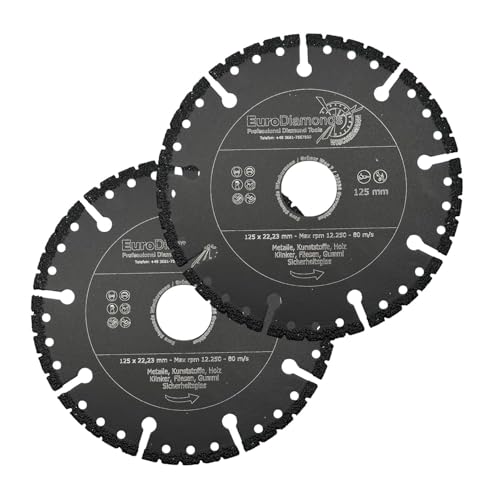 EDW Profi Diamant-Trennscheibe Allesschneider 2er Spar SET 125mm zum Schneiden von Kunststoff Holz Metall GFK Carbon Glas Rescue Diamanttrennscheibe mit extrem wenig Funkenflug