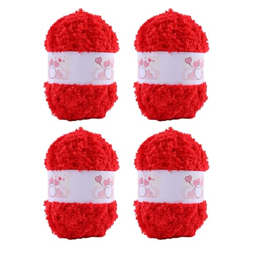 ACESOME 4 x 50 Gramm Plüschgarn, Strickgarn mit Fransen Künstliche Pelzgarn Flauschig Fransengarn Super Soft Chunky Garn Flauschiges Garn zum Häkeln Stricken Mikrofaser Garn (Karminrot)