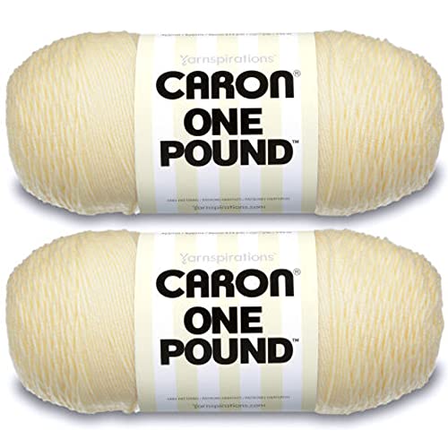 Caron Cremefarbenes Garn mit einem Pfund – 2 Packungen mit 454 g – Acryl – 4 Medium (Kammgarn) – 800 Meter – Stricken/Häkeln