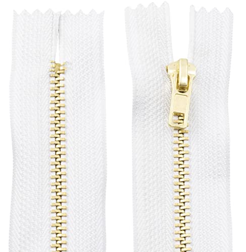 AERZETIX - C61372-5er-Set nicht trennbare Reißverschlüsse 20 cm aus metall - Farbe weiß - reißverschluss mit schieber für lederwaren nähen rock kleid hose kurzwaren tasche weste