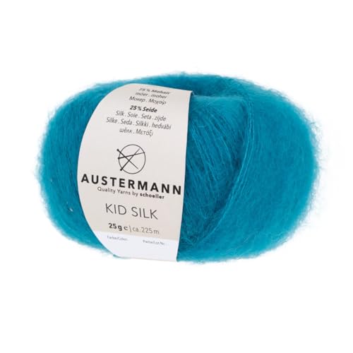 25g Austermann Kid Silk Mohairwolle mit Seide Lacegarn Lacewolle Handstrickgarn Wolle zum Stricken und Häkeln 1-weiß