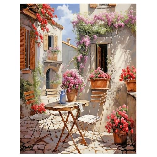 DCIDBEI Diamond Painting Blumen Haus 40x50cm Diamant Painting Landschaften Puzzle Diamant Painting Landschaft Rote Blumen Diamant Painting Bilder Garten Ecke des Hauses Stickbilder Erwachsene Flowers