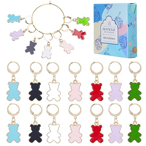 SUNNYCLUE 1 Box 14 Stück Häkel Maschenmarkierer Maschenmarkierer Strickbär Stichmarkierung Anhänger Tiere Hebelrücken Enmamel Süßer Stichmarkierung Zum Stricken Weben Nähen Handarbeiten Heimwerkerb