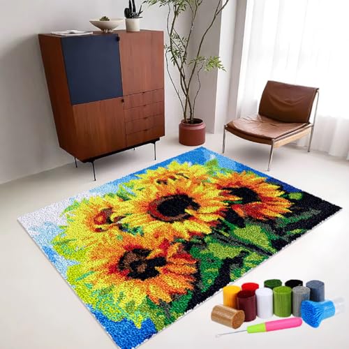 Knüpfteppich Zum Selber knüpfen, Teppich Set Knüpfsets Latch Hook Kit für Erwachsene, 69 x 102 cm kreuzstich-set DIY Knüpfteppich-Sets Knüpfen Teppich Knüpfpackung Latch Hook Kits für Home Décor