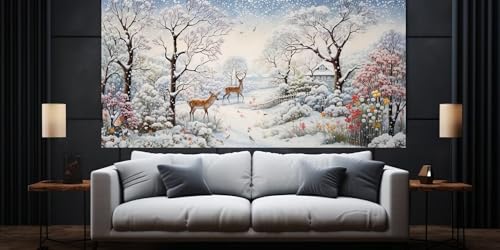 Diamond Painting Malen Nach Zahlen Erwachsene, Winterlicher Wald Diamond Painting Erwachsene 5D Diamant Painting Bilder, DIY Daiming Panting Cross Stickerei für Home Wanddekoration 50x100 cm,D143