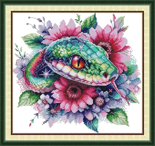 IUHUI 14ct Kreuzstich Set Vorgedruckt für Anfänger Erwachsene, Blume Schlange DIY Kreuzstich Stickpackungen Stickerei Stoff Vorlagen