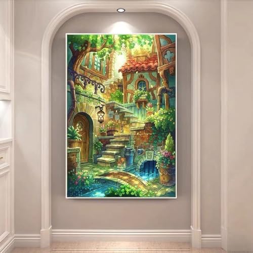 Taxpy Kreuzstich Stickpackungen Vorgedruckt, Gartenlandschaft,60X80Cm Bilder Stickerei Set