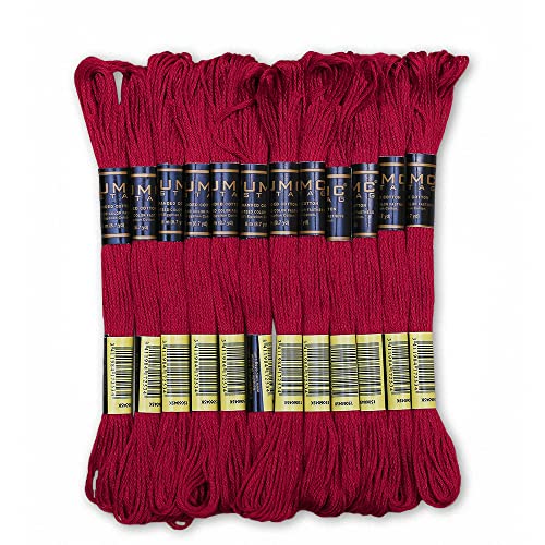 UMC STAG Packung mit 12 roten Premium-Stickgarnen | 100% ägyptische Baumwolle Premium-Stränge | Kreuzstich-Stickgarn | Öko-TEX-zertifizierte gestrandete Baumwolle | Ideal für Kunst und Handwerk (Rot