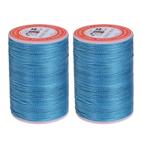 sourcing map Rundes Ledernähgarn, gewachst, 80 m, Polyester-Wachsschnur, 0,55 mm Wachsschnur für Lederhandwerk, Buchbindung, Armbänder, geflochten, Pfauenblau, 2 Stück