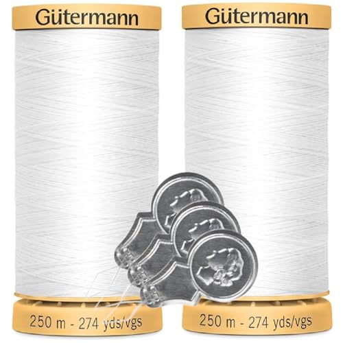 Gütermann Natürliches Baumwollgarn, 50 W (je 250 m), 2er-Pack mit 3 Bella's Crafts Nadeleinfädlern (1006 Weiß)