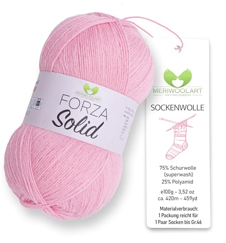 MeriWoolArt® Sockenwolle 4-fädig – 100g Merino Wolle Garn zum Stricken & Häkeln, 75% Schurwolle (superwash), 25% Polyamid, 420m – Ideal für Socken für Herren und Damen, Pullover & Cardigans 4635