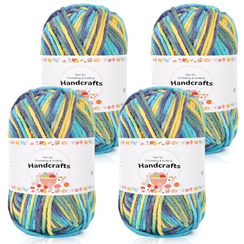 Aeelike 200g(4x50g) Farbverlauf Baumwolle zum Stricken, Langlebige Amigurumi-Set Acryl Baumwollgarn, 5Ply Wolle zum Häkeln für Socken, Mützen, Schals, Pullover, Puppen, Blau Gelb