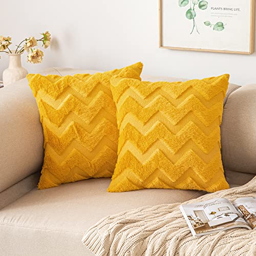 MIULEE 2er Set Wolle Kissenbezüge Dekokissen Polyester Sofakissen Weich Couchkissen Kissenbezug Zierkissenbezug mit Verstecktem Reißverschluss für Wohnzimmer Schlafzimmer 45x45 cm Senfgelb