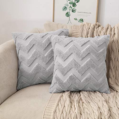 MIULEE 2er Set Wolle Kissenbezüge Sofakissen Dekokissen Welle Polyster Kissenbezüge Couchkissen Weich Kissenbezug Zierkissenbezug Versteckter Reißverschluss Wohnzimmer Schlafzimmer Hellgrau 45x45cm
