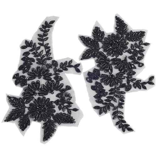 CABODYALS 1 Paar 3D Pailletten Blumenapplikationen Schwarze Mit Perlen Bestickte Spitzenapplikationen Besatz Aus Polyester Blumenperlenstickerei Zum Aufnähen Auf Tüllflicken Zum Nähen Herstellen von K