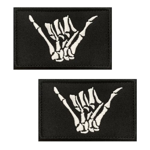 2 Stück Schwarz Shaka-Hand Patches Taktisches Stickerei Skelett-Hand Emblem Hook and Loop Patches Applikationen für Jacken,Hemden,Rucksack,Kleidung,Uniformen,DIY-Zubehör,Hosen,Mützen,Taschen