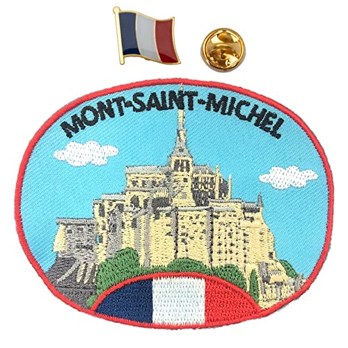 A-ONE Mont Saint Michel bestickter Aufnäher + modische Anstecknadel, patriotisches Zubehör-Bundle, Wahrzeichen-Patch und Brosche, perfekt für Herrenanzüge, Hemden, Rucksäcke, Laptops NO.443P