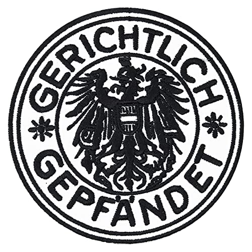 Kuckuck Aufnäher - Gerichtlich gepfändet - Gericht Pfandhaus Patch Eagle gestickt - Österreich Adler Bügelbild Austria Applikation für Uniform/Jacke/Tasche/Hemd - 70x70mm