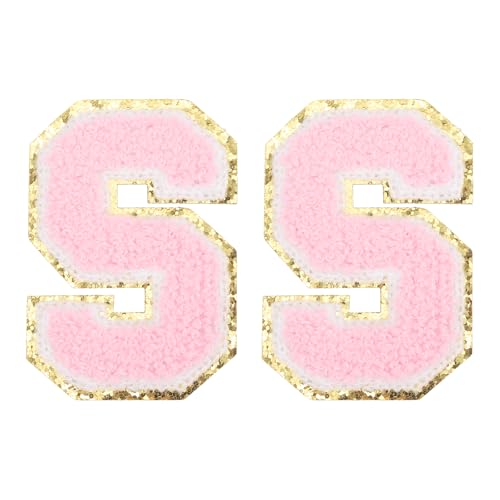 PATIKIL 2 Stück Chenille Bügelbuchstaben, Buchstaben Aufbügeln Chenille-Glitzerbuchstaben-Patch für DIY-Kleidung, Stoff, Schuhe, Taschen, Pink, Alphabet S