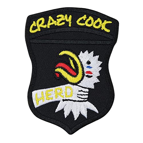 Spaß Küchen Aufnäher Huhn Kochen Patch Küchenchef Abzeichen- Crazy Cook Chicken Spicy - Meister-Koch Aufbügler Applikation zum aufnähen für Kochjacke/Schürze/Hemd - 78x60mm