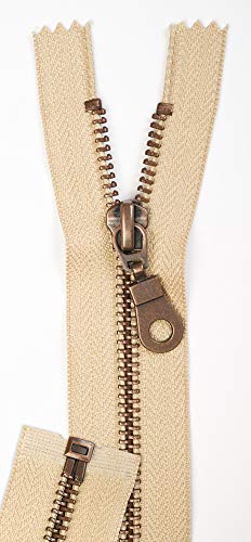 Jajasio 2 Stk. Reißverschluss Metall Altmessing Teilbar in 13 Farben beige 70cm Metallreißverschluss für Jacken Mantel