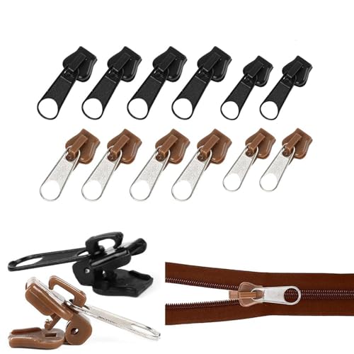 Drei GröSsen: Geeignet für verschiedene Anwendungen. Groß (1,3 x 3,6 x 1,1 cm), mittel (1,1 x 3,4 x 1 cm) und klein (1 x 2,8 x 0,85 cm) – flexible Auswahl verschiedener Reißverschlüsse. Umfassendes 12 Teiliges Set: Erfüllen Sie Ihren täglichen Bedarf an Reißverschlussreparaturen, 6 schwarze Reißverschlussschieber, 6 braune Reißverschlussschieber, die perfekte Kombination, um immer gut ausgerüstet zu sein. Hochwertige Materialien: Ersatz-Reißverschlussschieber bestehen aus strapazierfähigem Nylon Kunststoff und einer Legierung, sind BPA-frei und auf Langlebigkeit und sichere Verwendung ausgelegt. Einfach Zu Bedienen: Unser Produkt ist einfach zu bedienen und erfordert keine zusätzlichen Werkzeuge. Der Reißverschluss ist abnehmbar und wiederverwendbar. In nur wenigen Sekunden können Sie Ihre Artikel wieder wie neu aussehen lassen. Vielseitige Anwendungen: Ideal für Jeans, Röcke, Gepäck, Rucksäcke, Jacken und Koffer – Beheben Sie problemlos häufige Reißverschlussprobleme wie beschädigte Schieber und Risse.