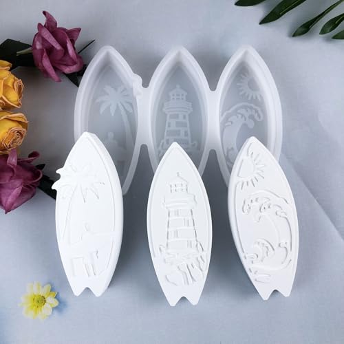 Skeadex Silikonformen Gießformen Sommer, 3er Silikonform Surfbrett Gießform Sommer Gießformen Silikon Surfbrett mit Leuchtturm Wellen Muster Gips zum Gießen Silikonformen Sommer für DIY Gips Kerzen