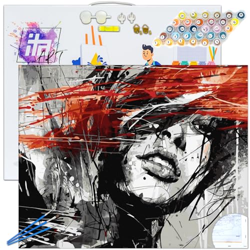 ITA Art Malen nach Zahlen Komplett Set mit Keilrahmen, Acrylfarben, Pinseln, Zubehör, Geschenkbox - DIY Gemälde Bastelset Kit mit Leinwand für Erwachsene, 40x50 cm, Die Frau in Schwarz