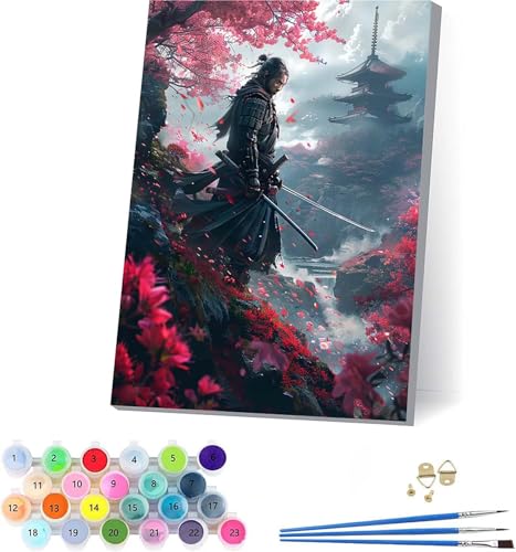 Japanischer Samurai Malen Nach Zahlen Erwachsene Mit Rahmen, Malen Nach Zahlen Architektur, DIY Set Erwachsene Mit 3 Pinseln und Acrylfarbe, Deko Wohnzimmer, Geschenke für Frauen 100x130cm 4-9000