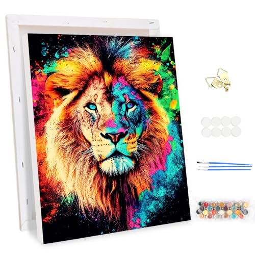 MEIYUDA Malen Nach Zahlen Erwachsene mit Rahmen, Diy Set Erwachsene Regenbogen Löwe Bastelset, 3 Pinsels Und Acrylfarbe Diy Handgemalt öLgemäLde Kit Als Geschenk und Home Haus Deko 30x40cm