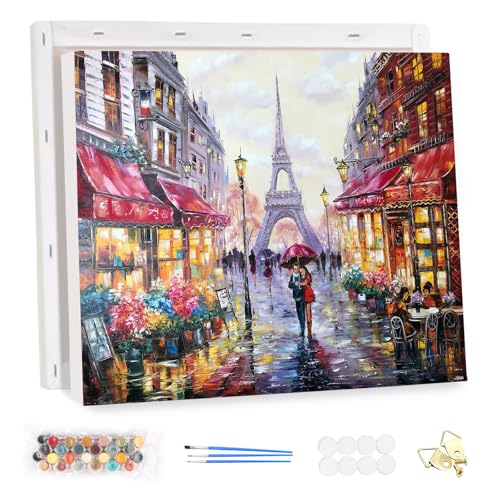 MEIYUDA Malen Nach Zahlen Erwachsene mit Rahmen Liebe in Paris, Paint by Numbers Malen Nach Zahlen, DIY Set mit Pinseln und Acrylfarben Handgemalt Ölgemälde Leinwand für Home Décor 40x30cm