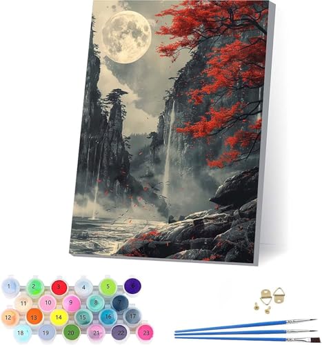 Mond Malen Nach Zahlen Erwachsene Mit Rahmen, Malen Nach Zahlen Baum, DIY Set Erwachsene Mit 3 Pinseln und Acrylfarbe, Paint by Numbers für Deko Wohnzimmer, Geschenke für Frauen 100x130cm P-2683