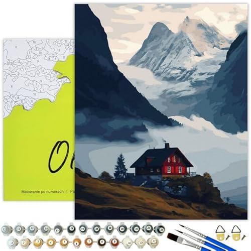 Oh Art! Malen Nach Zahlen Erwachsene DIY Bastelset 40 x 50 cm Mit Rahmen Set Mit 3 Pinseln Acrylfarben Und Leinwand Gespannt Auf Holzrahmen Kreativ Set Paint By Numbers Adult Swiss mountains