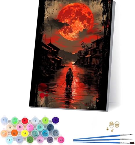 Samurai Malen Nach Zahlen Erwachsene Mit Rahmen, Malen Nach Zahlen Rivers, DIY Set Erwachsene Mit 3 Pinseln und Acrylfarbe, Paint by Numbers für Deko Wohnzimmer, Geschenke für Frauen 100x130cm 0-4369