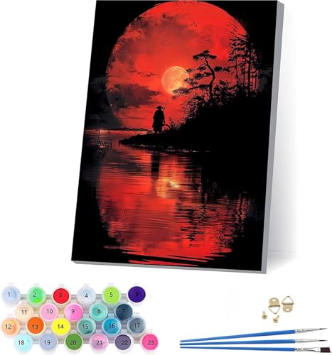 Sonne Malen Nach Zahlen Erwachsene Mit Rahmen, Malen Nach Zahlen Samurai, DIY Set Erwachsene Mit 3 Pinseln und Acrylfarbe Knitterfreie Leinwand, Paint by Numbers für Deko Wohnzimmer 100x130cm 2-3229